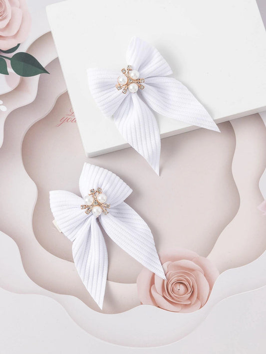 2pcs Toddler Girls Rhinestone & Faux Pearl Detail Bow Decor Casual Hair Clipk