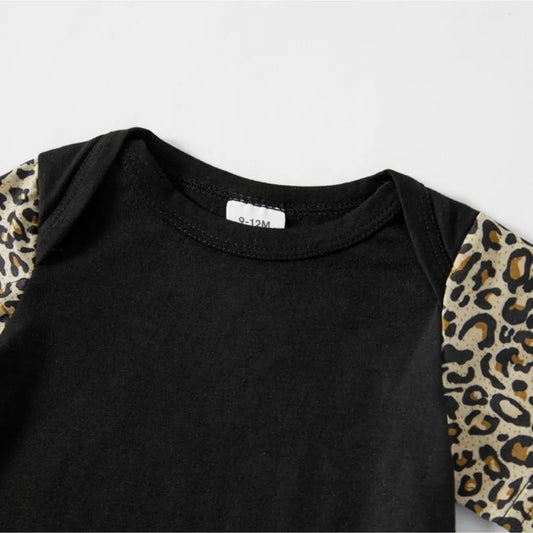 Leopard Raglan Sleeve Splice Black Mini Dress