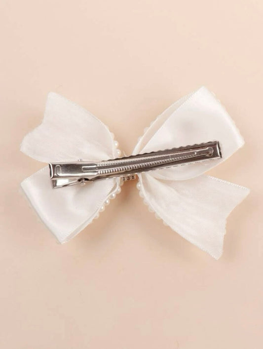Toddler Girls Faux Pearl Bow Decor Hair Clip